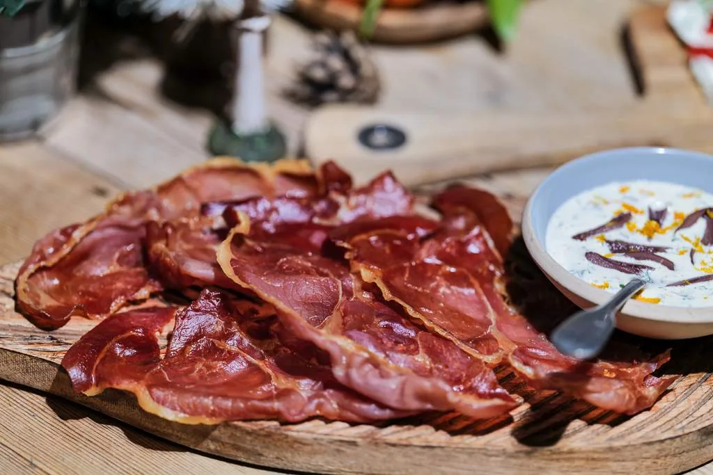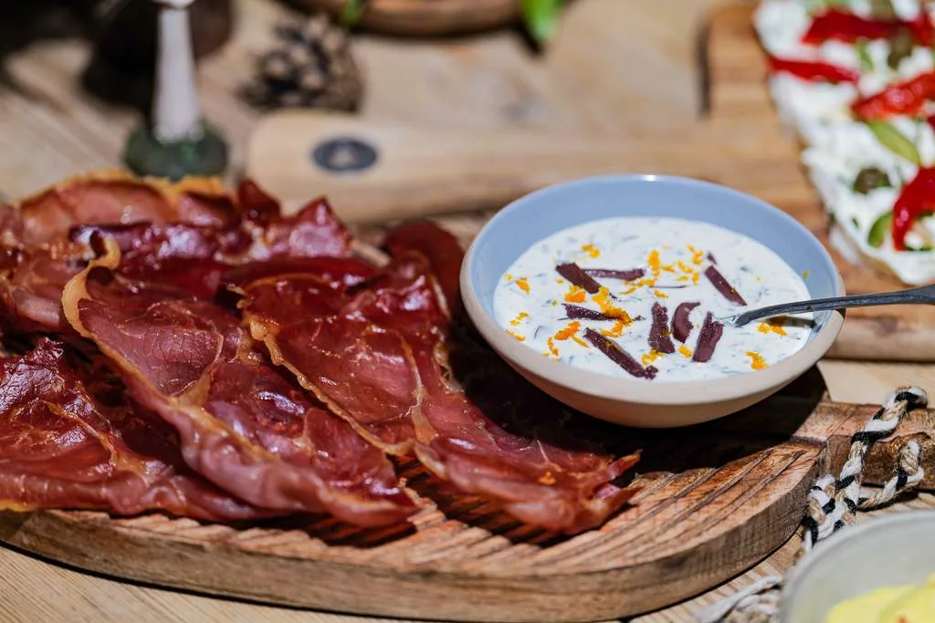 Kremostplanke med reserva serranoskinke