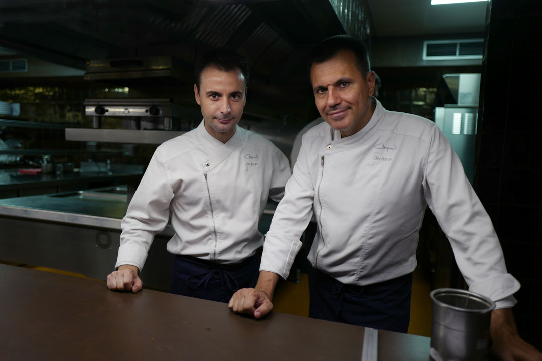 Det er de tre ex-elBulli-kokkene Mateu Casañas, Eduard Xatruch og Oriol Castro som står bak Disfrutar. Fra før har de vår favoritt Compartir, som ligger i ferieparadiset vårt, Cadaques. Det spiser vi alltid to ganger hver sommer.