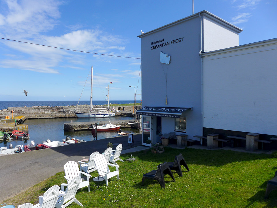 Drinker, diamantringer og nybakte kaker. Er det mulig å samle tre slike fantastiske kategorier i et og samme hus? Så absolutt. I den lille byen Listed på Bornholm finner du Bay Frost. Dette er en kafé, bar og gullsmed/klokkemaker drevet av ekteparet Sebastian Frost og Signe Bay Frost. Stedet ligger idyllisk til på havnen. Her kan du spise Signes hjemmebakte kaker (folk kommer langveisfra for å spise disse), ta en gin og tonic i sola og senere shoppe eksklusive smykker og klokker som Sebastian har laget. Signe lager også økologiske leppepomader som hun selger i kaféen. Hos Bay Frost har de spesialisert seg på vermut og gin. De har hentet inspirasjon fra Barcelonas mange vermut- og ginbarer. Her kan jeg kjenne meg igjen. Jeg har også latt meg fascinere av dette. Det kan du lese om her.