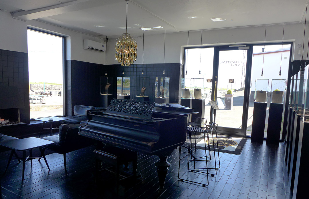 Sebastian har 15 spesielle gintyper og han har fire ulike tonics. Ingen tradisjonelle, bare nøye utvalgte. Her får du også eksklusive viner på glass. De har investert i et eget system i samarbeid med Michelin-restaurant Kadeau. Etter et glass champagne, eksklusiv vin eller en GT er det fort gjort å gå på en shoppingsmell i smykkeavdelingen. Sebastian lager klokker og smykker og har flere faste kunder som kommer i ens æren til den lille butikken fra bl.a Norge.
