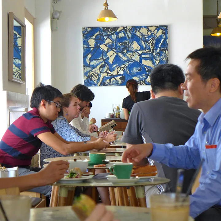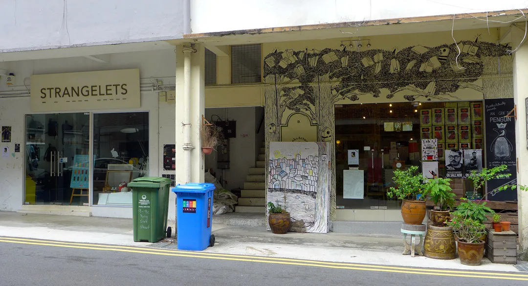 Det startet altså med kaféen 40 Hands. Den ligger i 78 Yong Siak Street. Her er fokuset rettet på rettferdig handel. Dette er en av de første kaféen i Singapore som tok kaffekulturen på alvor. Det vokste kjapt opp et miljø rundt kaféen og litt etter litt poppet flere kule steder opp. Rett over gaten for 40 Hands ligger den fantastiske uavhengige bokhandelen Books Actually som foruten boker også selger vintage serviser og ting og tang. Jeg kjøpte selvsagt noen gamle skåler. Nabobutikken, Strangelets selger unike designting.