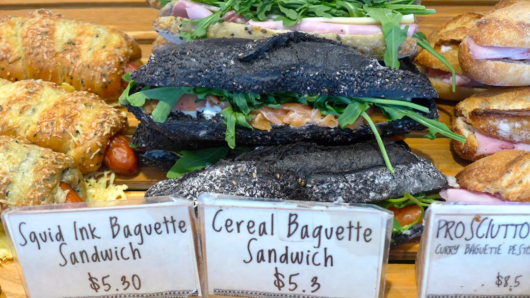 Folkene bak 40 hands har etterhvert åpnet en del andre steder, og et av dem er Tiong Bahru Bakery – stedet som er kjent for fantastiske kreative croissanter og ikke minst, baguetter farget med blekk fra blekksprut. Det er akkurat slike baguetter jeg har laget etter at jeg kom hjem. Oppskriften er min egen og du finner den etter denne bildeserien.