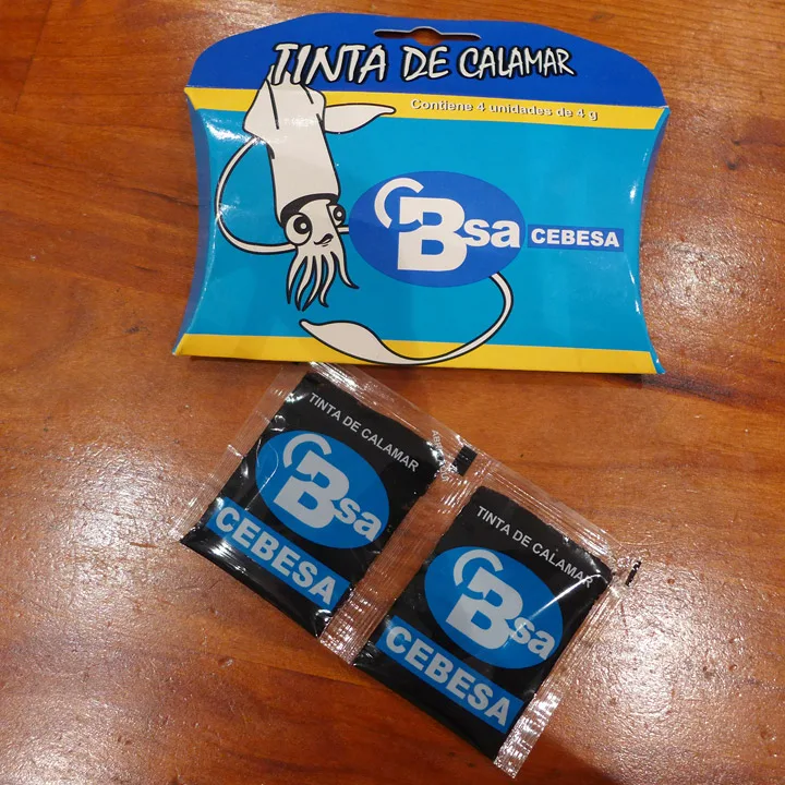 8 g blekksprutblekk. (disse kjøper jeg i Spania når jeg er der, men du kan kankje bruke sort matfarge i stedet for)