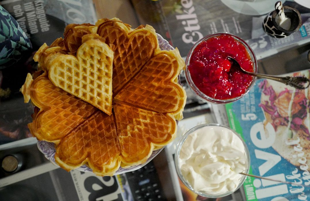 Nå fikk jeg lyst på vafler… Jeg skal ta på syltetøy først 🙂
