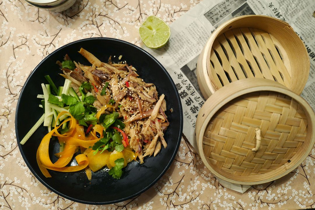 Så here goes! Hønsekjøtt i vietnamesisk glaze, grønnsaker, urter og steam buns er neste middag ut i hønsedugnaden fra HellesKitchen.
