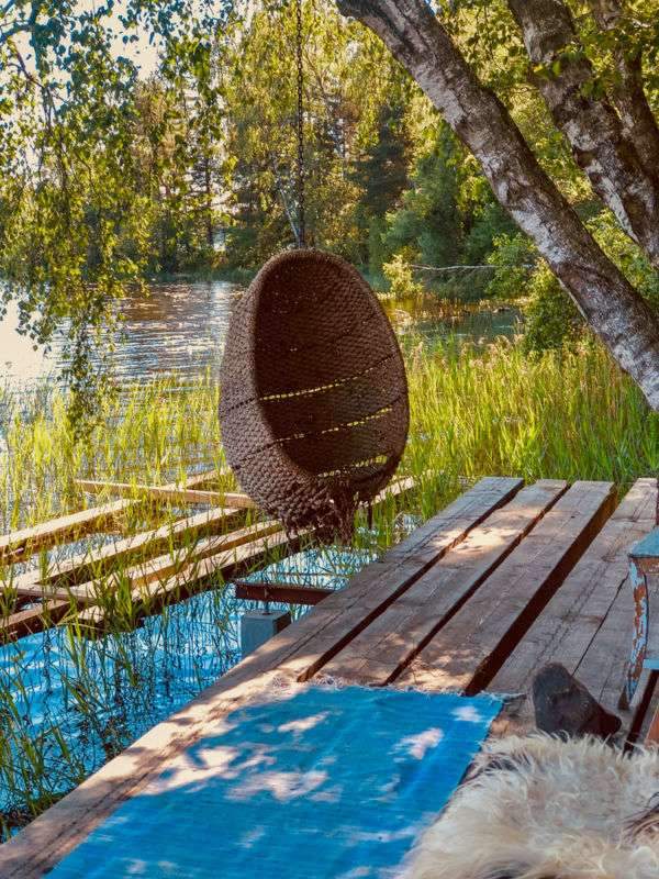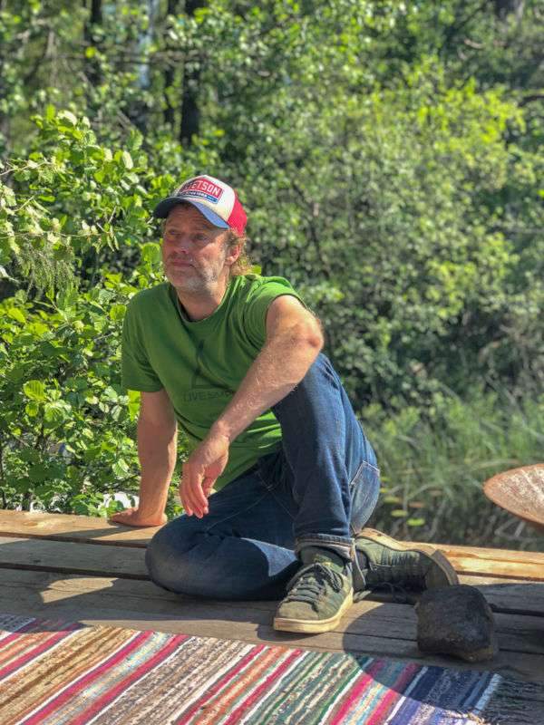 Inne i den deilige vedfyrte badstuen, som ligger på en liten treflåte, er det dog varmt, godt og trygt. Det samme er det med den deilige badestampen med ravfarget vann. Fargen kommer fra de mange grankonglene i området som farger vannet. Det er ikke skittent. Det er ekte.