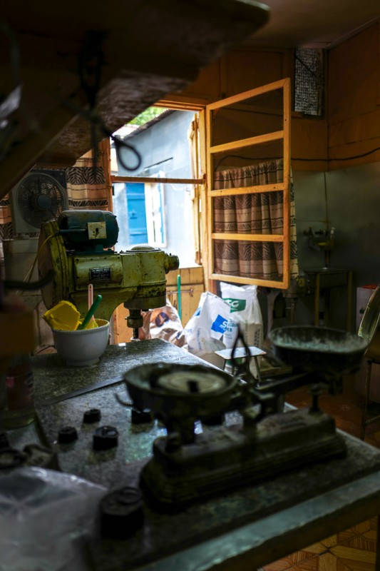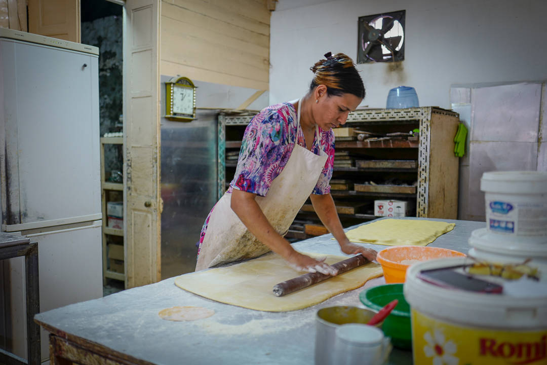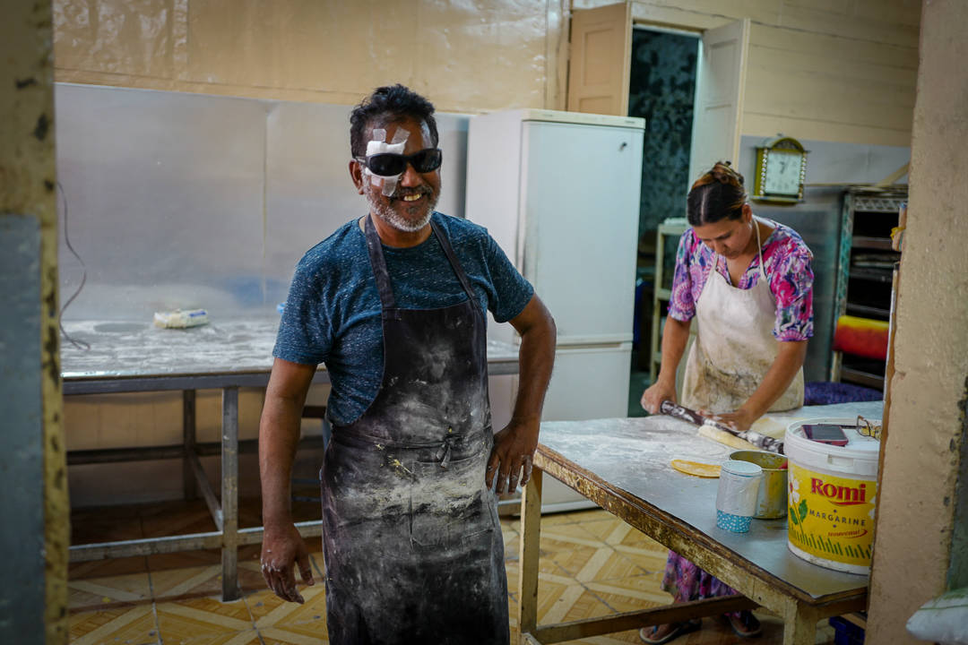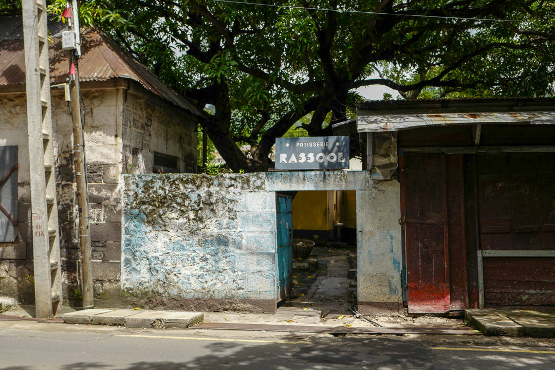 Adrian tar oss med dypere inn i en del av byen som vi ikke har vært i. Han stopper utenfor en mur med en port. Innenfor porten ligger Patisserie Rassool – et av Mauritius aller beste bakeri og konditori. Bakeren har jobbet i her i 50 år, så han vet helt åpenbart hva han driver med.