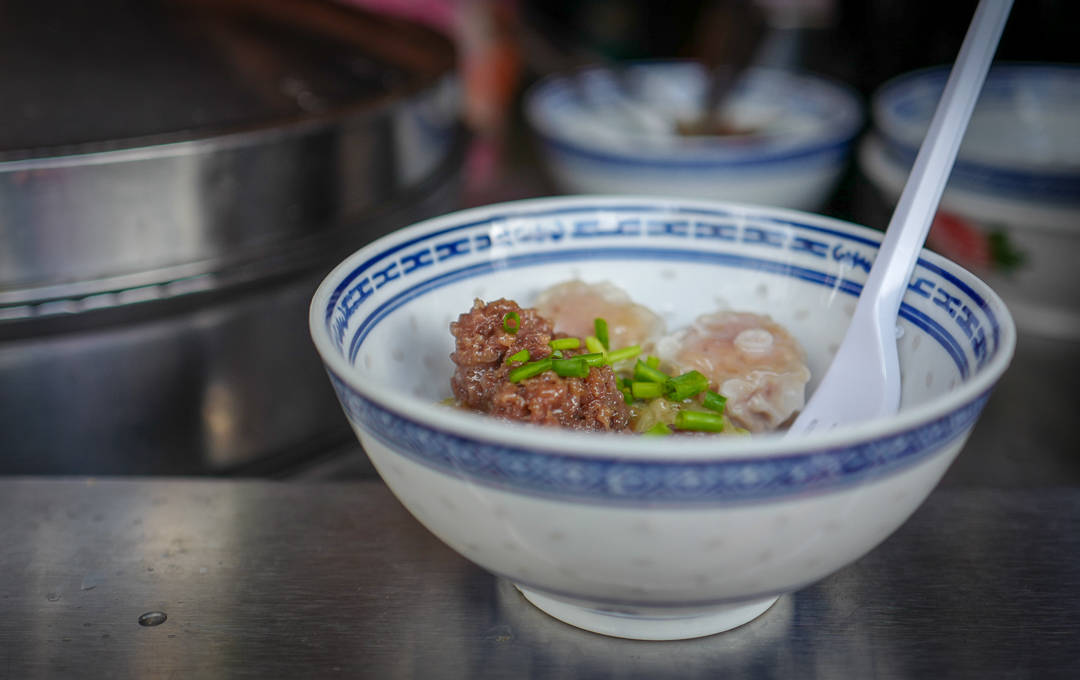 Vi får tre boulettes: En med kylling, tørkede reker og Chayote, en med oksekjøtt, sorte linser og masse frisk ingefær. Den siste inneholder svinekjøtt og daikon. De smelter på tungen! Noen av dem er ganske klissete og kanskje i overkant gelatinrike, men smaken! Herregud, smaken!