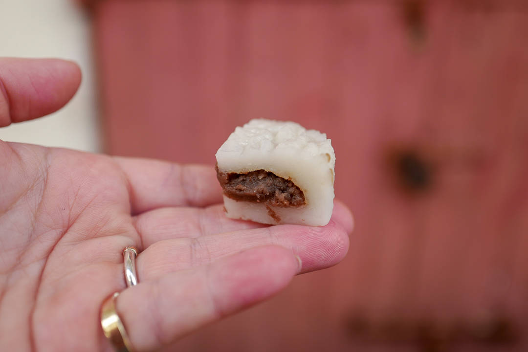 Siste stopp på Food Tour’n er et annet kinesisk sted som selger søtsaker. Chu Finn Leung selger myke dessertboller laget av ris fylt med rød bønnepaste. Det er nesten som de japanske mochie. Fyllet smaker nydelig og konsistensen er ikke så klissete som jeg trodde det skulle være. Vi får også smake på krystallisert papaya. Nydelig.