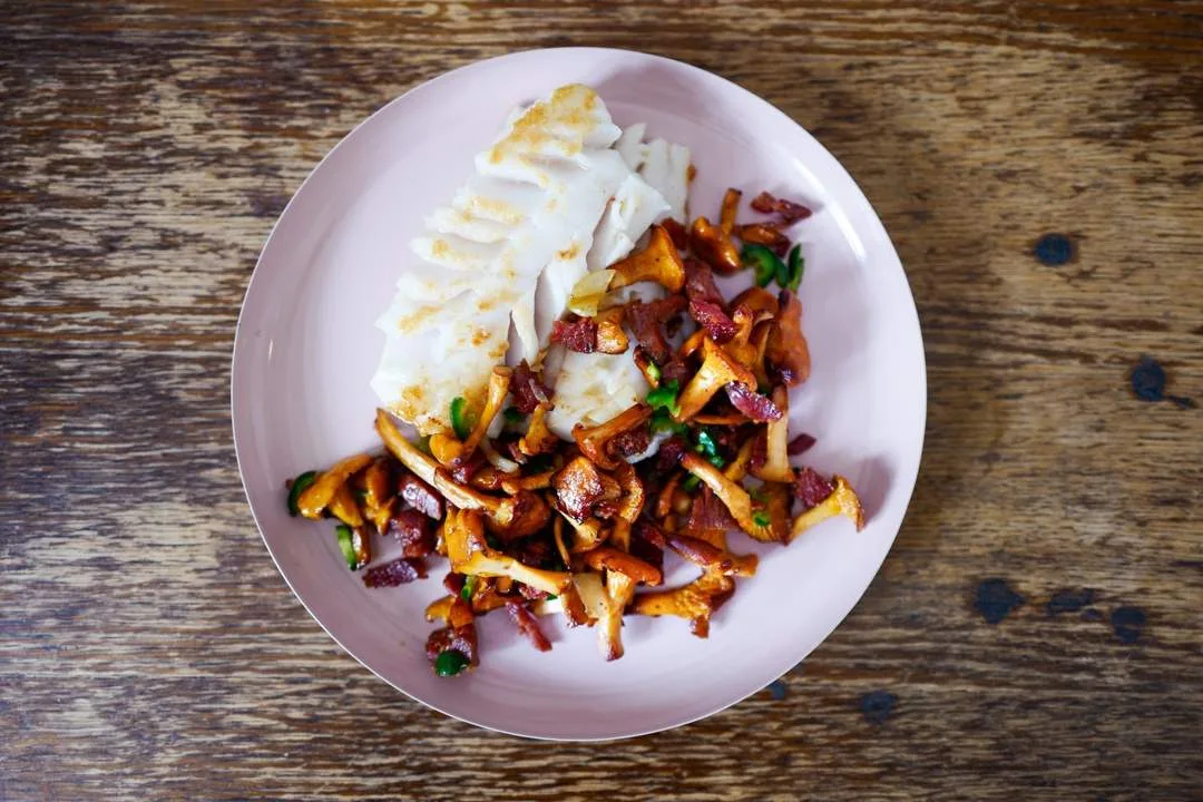 Isgalt eller annen hvit fisk er ypperlig å parre med kantareller og chorizo. Det er bare nydelig, rett og slett. Så neste rett er faktisk så god og enkel som den høres ut.