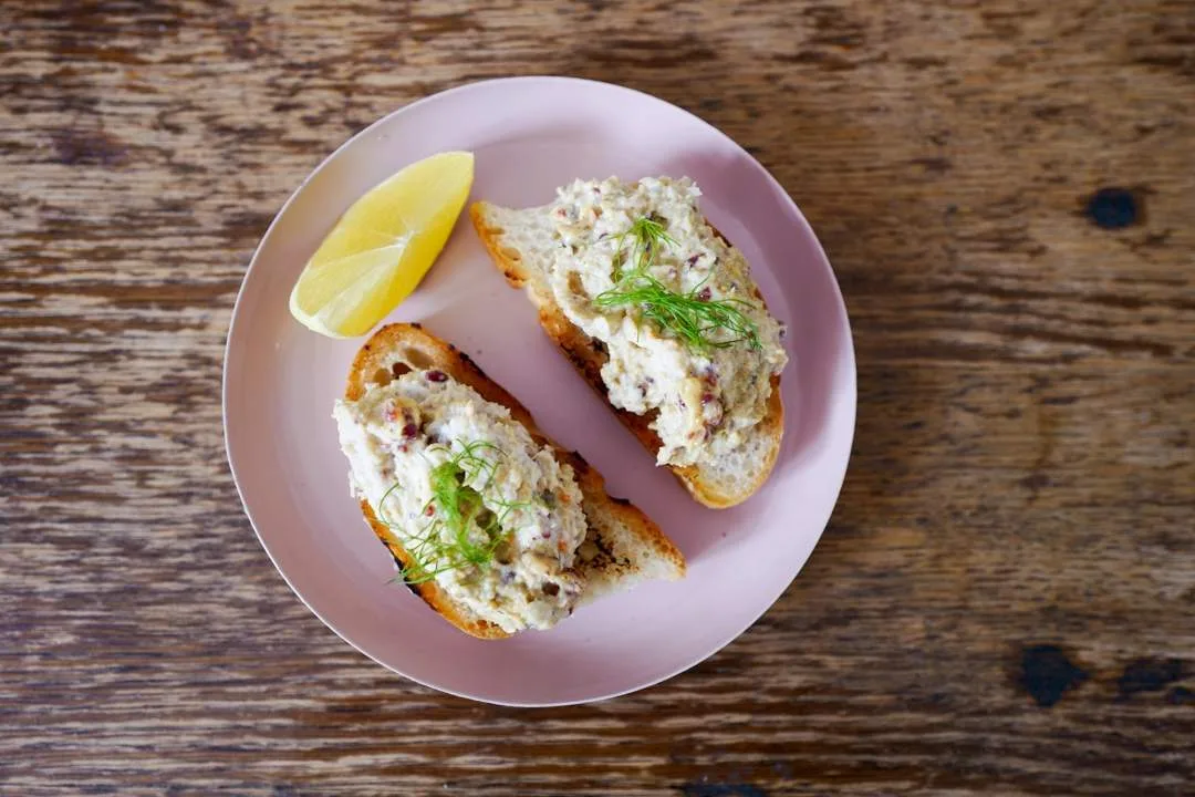 Bland majones og coppasmuler. Bland inn denne deilige majonesen med krabbekjøttet. Pepre og smak til med litt sitron. Rist godt brød eller smørstek i pannen og legg en solid skje med coppa-krabbemajones på hver skive og legg dill på toppen.