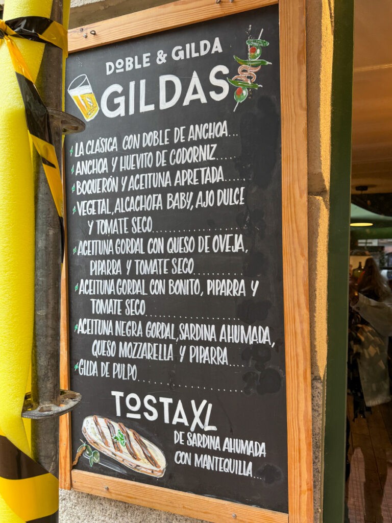 Banderillas og gildas. Dette er ingredienser tredd på et spyd. Banderillas er det generelle navnet på det, mens Gilda er et spesifikt spyd som består av syltet guindilla-chili, ansjos og manzanilla-oliven. Gilda er den perfekte komboen mellom salt, syrlig, sterkt til søt vermut.