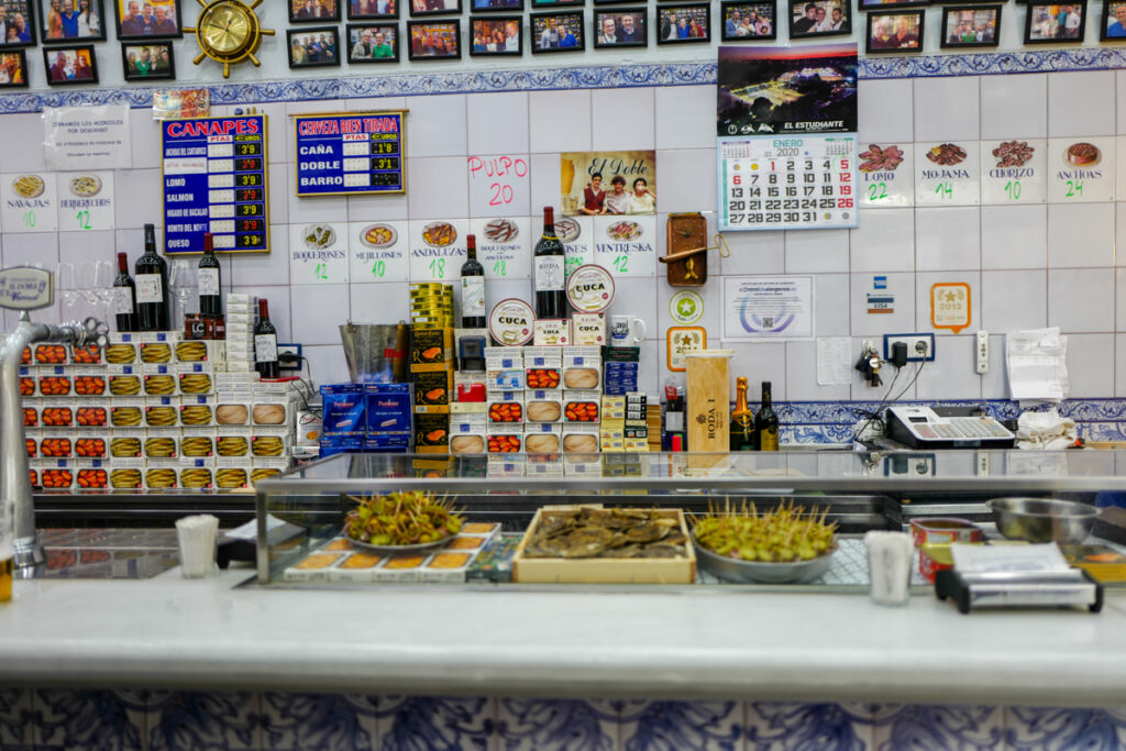 Øl, vermut og tapas. Ganske mange turister finner veien hit pga av beliggenheten, men det er et fantastisk sted med masse historie i veggene, så gå dit.