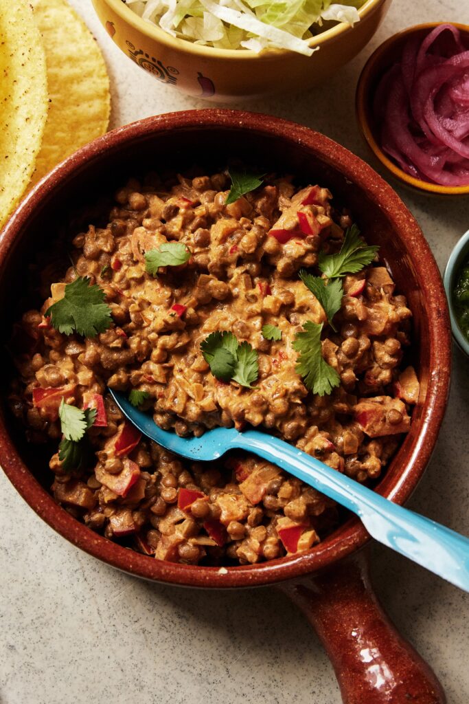 Vegetar: Lag også en vegetarvariant for de som ikke spiser kjøtt og for de som vil prøve noe de kanskje ikke har smakt før. Linsetaco (fra boken TACO!) er en nydelig og mettende taco.