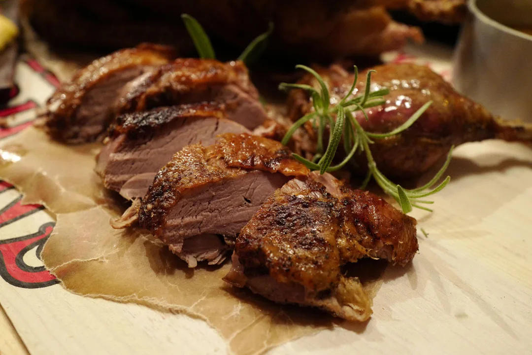 Skal man gå helt retro, så skal det jammen meg gjøres skikkelig. Helstekt and i appelsinsaus med potetrosetter må da være noe av det aller …