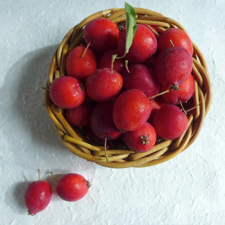 Dolgo heter eplene jeg fikk tak i på Bondens marked. De ser ut som plommer, og jeg som kun har tråkket på asfalt hele mitt …