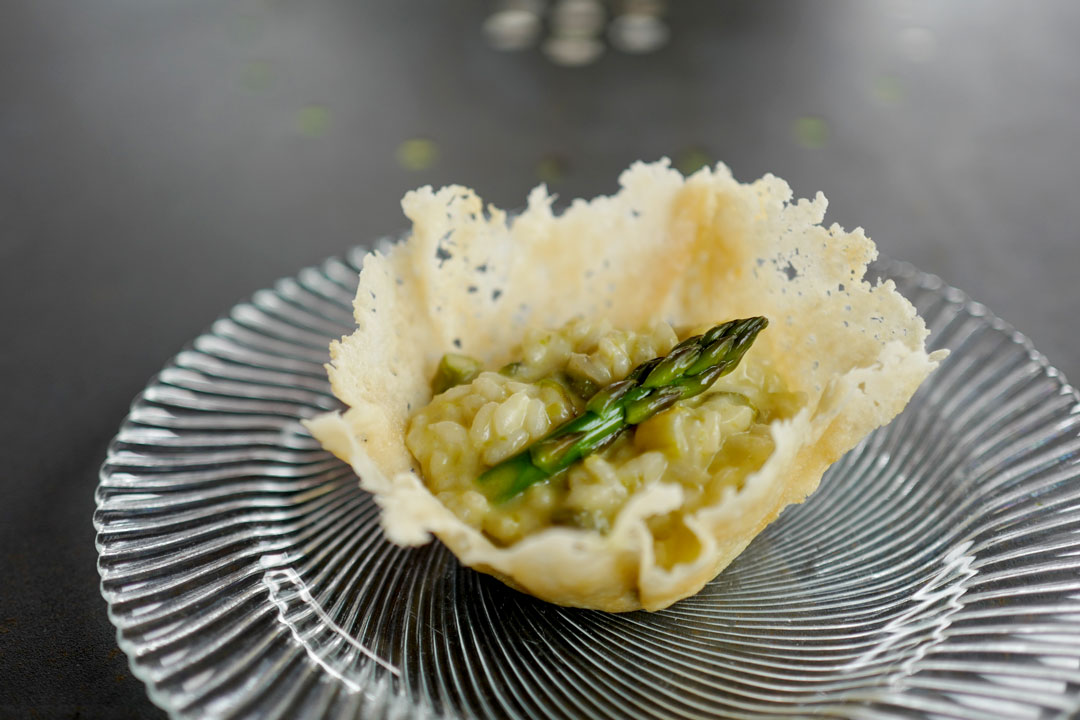 I dag er det Rina Pellegrini som skal vise oss hvordan hun lager sin deilige risotto med sesongens asparges. Hun har laget disse kule kurvene av Parmigiano-Reggiano …