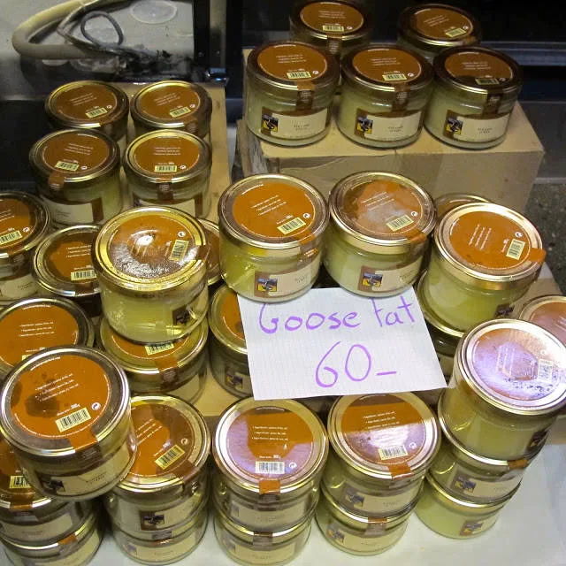 I butikken Ma Poule i Mathallen i Oslo får du kjøpt store glass med gåsefett. Det var et utrolig hyggelig syn og en utrolig hyggelig …
