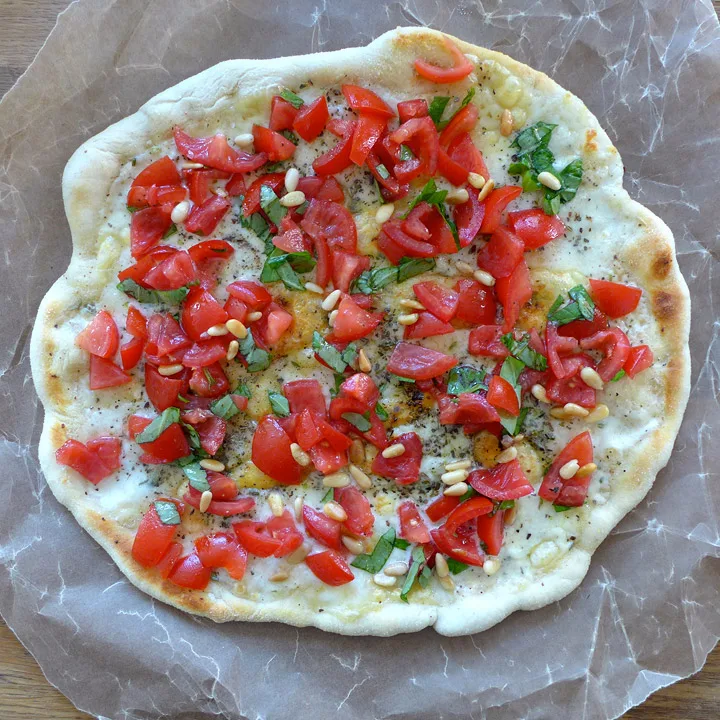 Elsker du også Caprese-salat? Deilig mozzarella, solmodne tomater, basilikum…. Mmmmmm! Jeg kunne ha spist det hver dag. I går hadde jeg lyst på pizza, men …