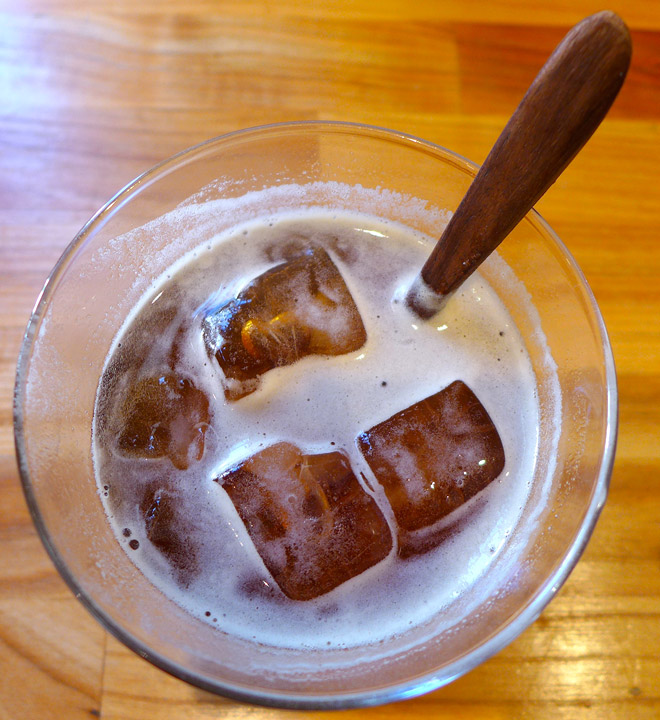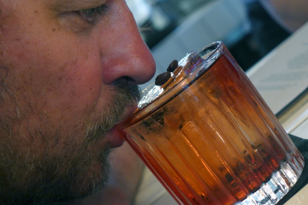 Dette er ikke iskaffe slik du kjenner det. Dette er en iskaffe tonic. Det er ikke jeg som har funnet opp dette, for dette er …