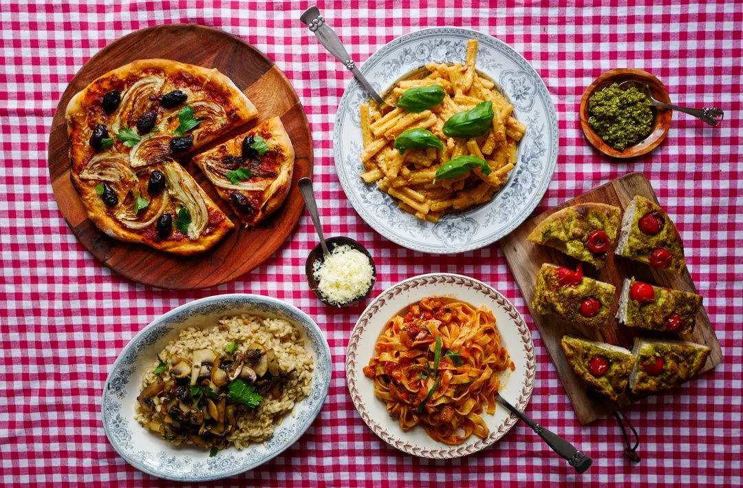 Italiensk aften med pasta, pizza, risotto og focaccia