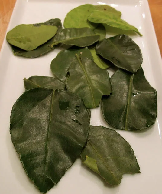 Kaffirlimeblader er uunnværlig i asiatisk mat. De passer utmerket i sauser med kokosmelk, ingefær og chili. Man kan nesten kalle dem for Østens laurbærblad. Jeg …
