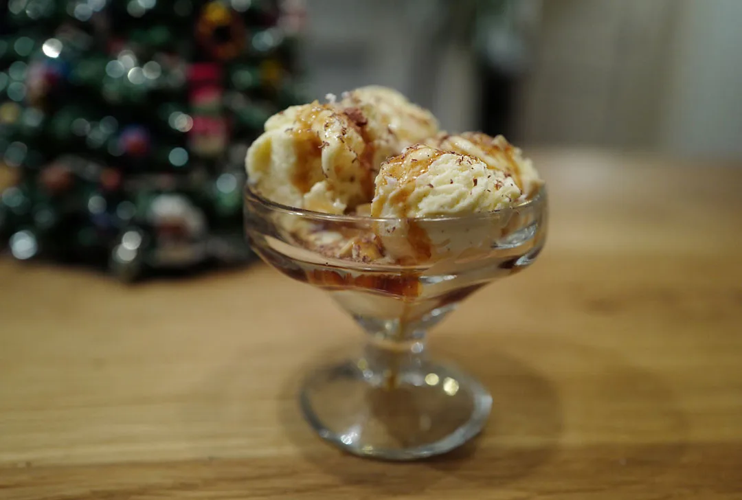 Is med kaffesirup, ristede nøtter, marsipan og sjokolade
