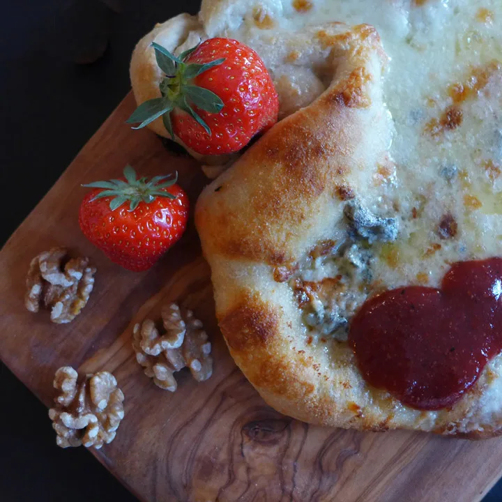 Pizza med fire oster og jordbærketchup til