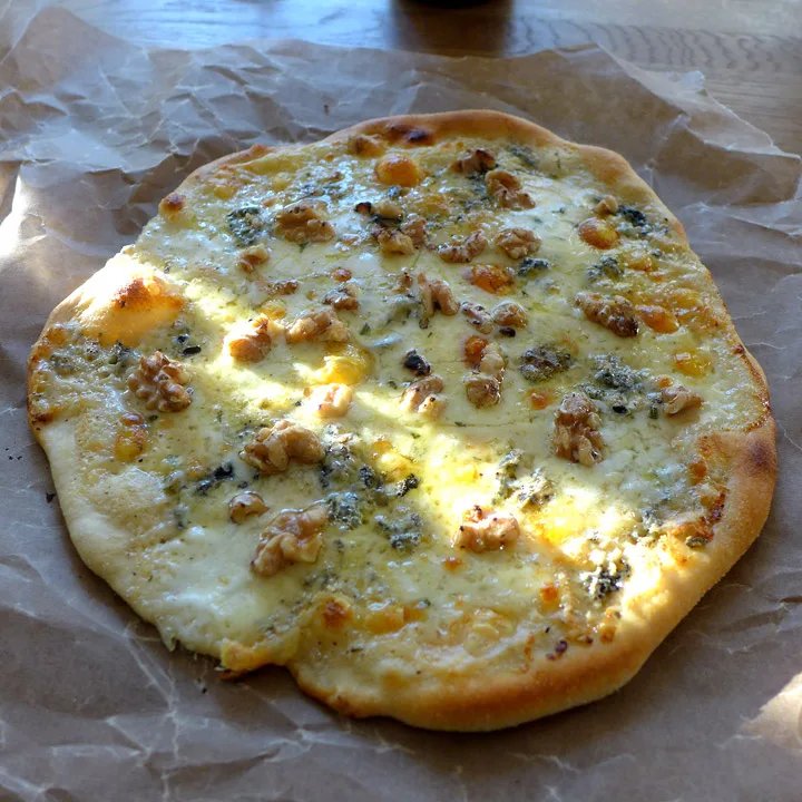 Pizza med fire oster, valnøtter og honning