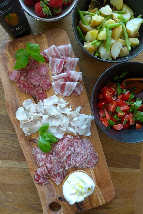 Spekemat med godt tilbehør er sommermat. Jeg kjøper alltid med meg spekemat hjem fra Italia, Spania eller Frankrike. Jeg kjøper hele stykker som jeg får …