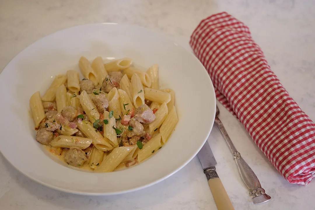 Jeg lager ikke alltid ting fra bunnen av, slik mange tror. Et eksempel kan være kjøttboller til pasta. Det finnes et fantastisk produkt: fersk pølse. …