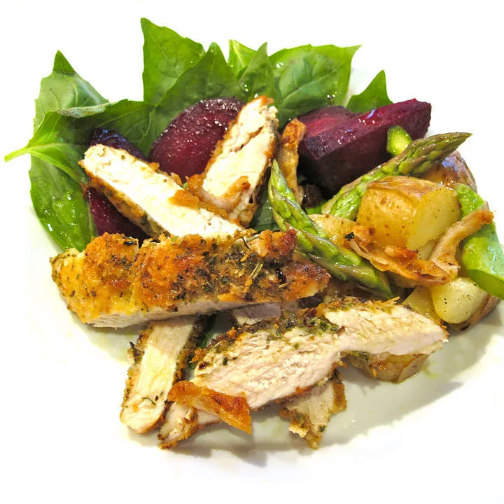 Du kan lage schnitzel av kylling, kalv eller svin. Min versjon er laget med et deilig kyllingbryst fra Holte. Saftig og herlig! Jeg vendte schnitzelen …