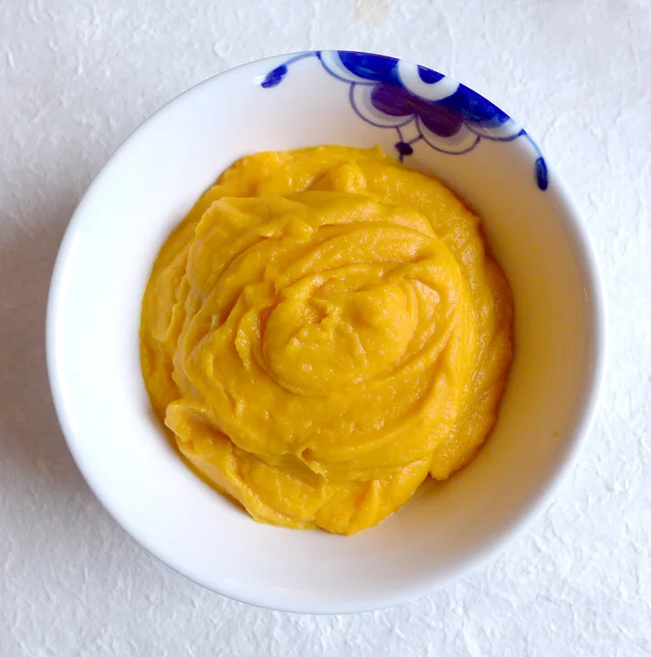 Solskinnsmat! Denne herlige puréen passer perfekt til grillet kylling eller annet lyst kjøtt. Men den er også perfekt til grillet hvit fisk. Søtpoteten er genial …