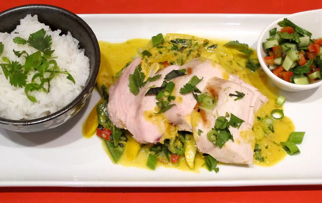 Dette er en rett med en mild peanøttsmak. Kyllingen har jeg tilberedt sous vide på verdens enkleste måte. Kyllingbryst fra Stange eller Holte kommer ferdig …