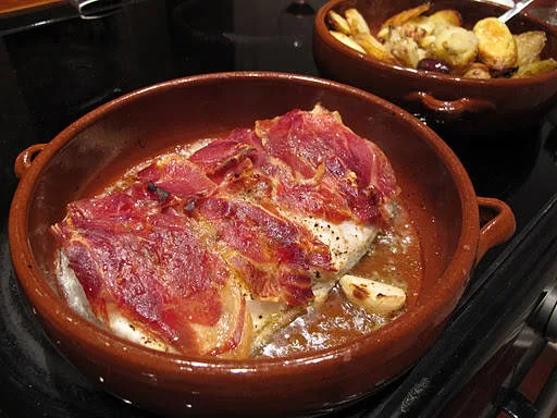 Et flott torskeloinstykke dekkes med litt finrevet sitron, salt og pepper. Så legger du fine skiver av spansk spekeskinke over fiskestykket. Sett i ovnen i …
