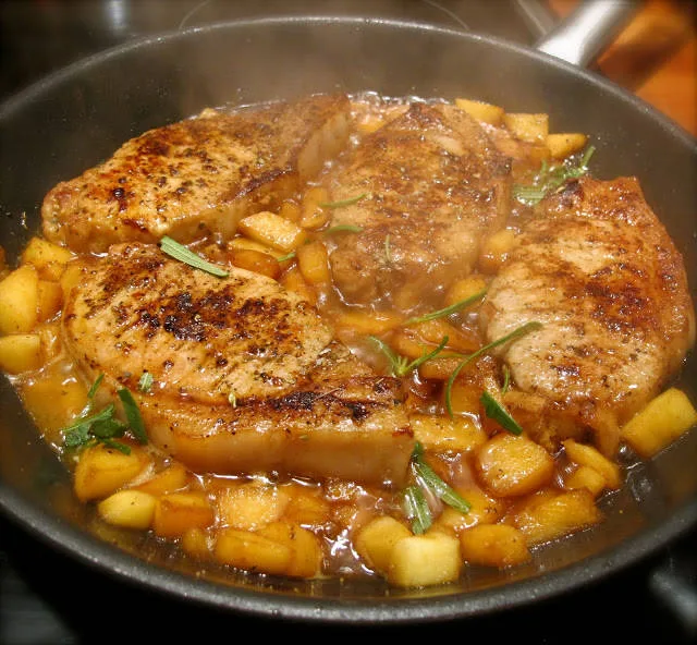 Svinekoteletter med stekte epler