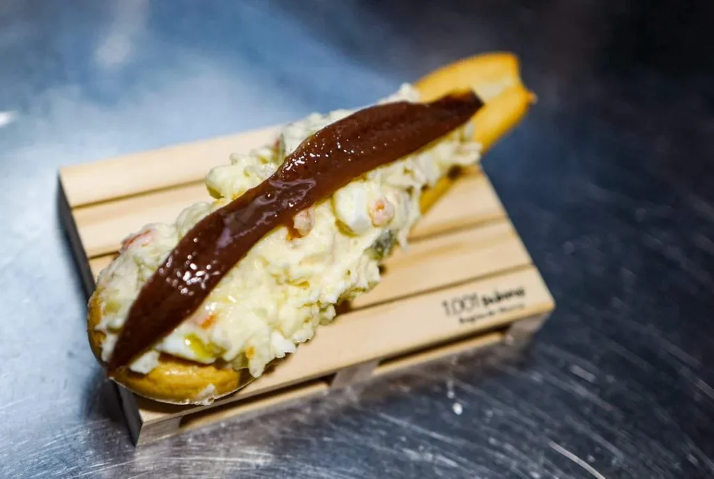 Retten er en slags salat (Ensaladilla Rusa) med egg, tunfisk, majones, potet og gulrot. Salaten legges på en oval brødpinne som kalles ‘roscilla’. På toppen legges en saltspeket ansjosfilet, gjerne delt i tre biter slik at man lett kan spise tapasretten med fingrene.