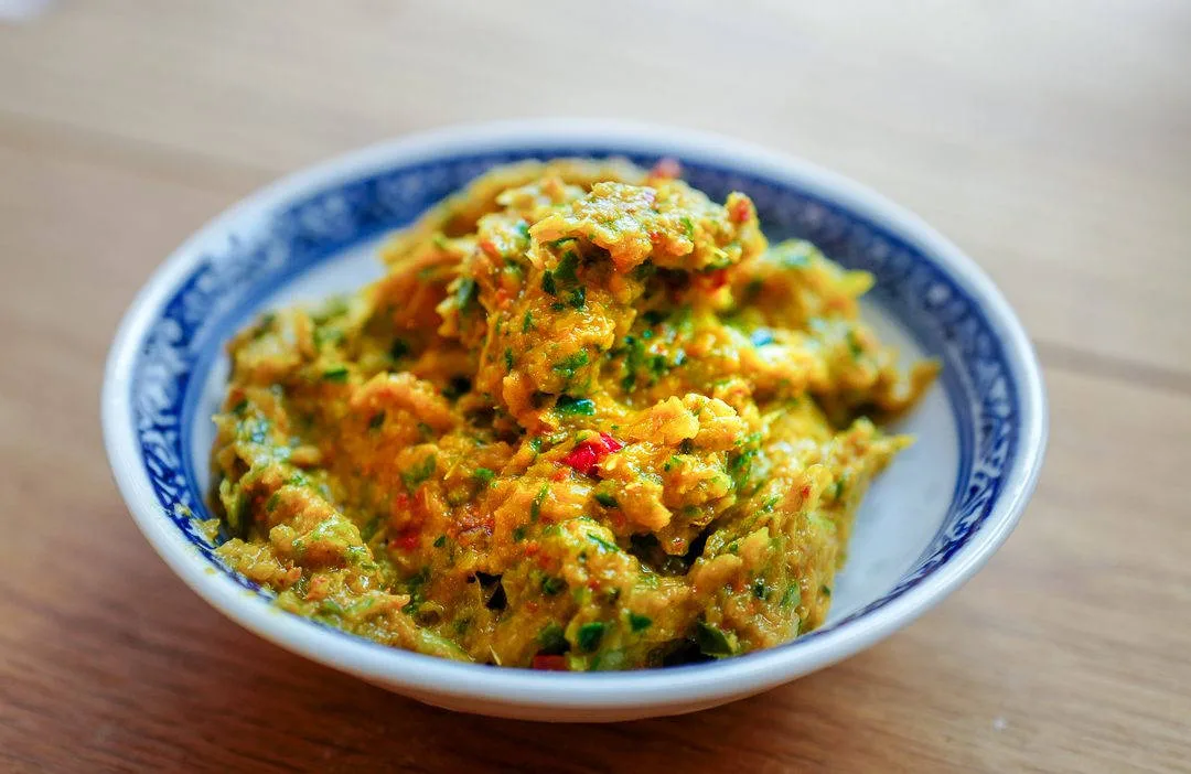 Dette skal du knuse til paste. Bruk tid og gjør det ordentlig. Dette er basen for hele retten. Mot slutten kan du bruke stavmikseren.
