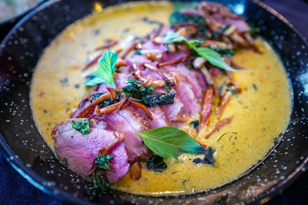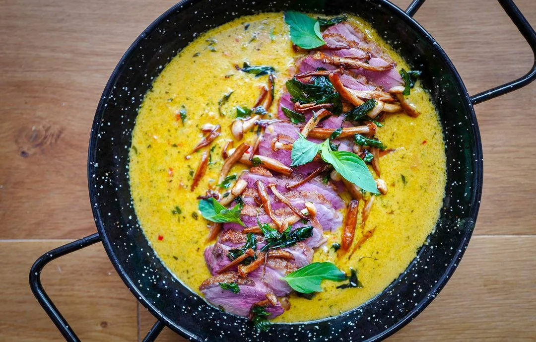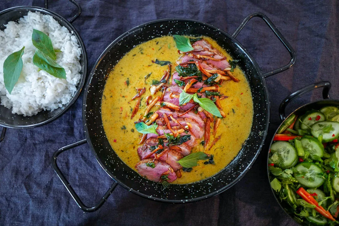 Jeg har et minne godt festet i smaksarkivet mitt om en andecurry som jeg fikk servert på en thai-restaurant i Male – hovedstaden på Maldivene. Det må være 10-11 år siden, men smaken henger fortsatt med meg. På denne restauranten satt Erik og jeg på gulvet i en alt for varm annenetasje. Eriks lange og stive bein likte definitivt ikke situasjonen. Ja, jeg var ikke så komfortabel selv når sant skal sies.