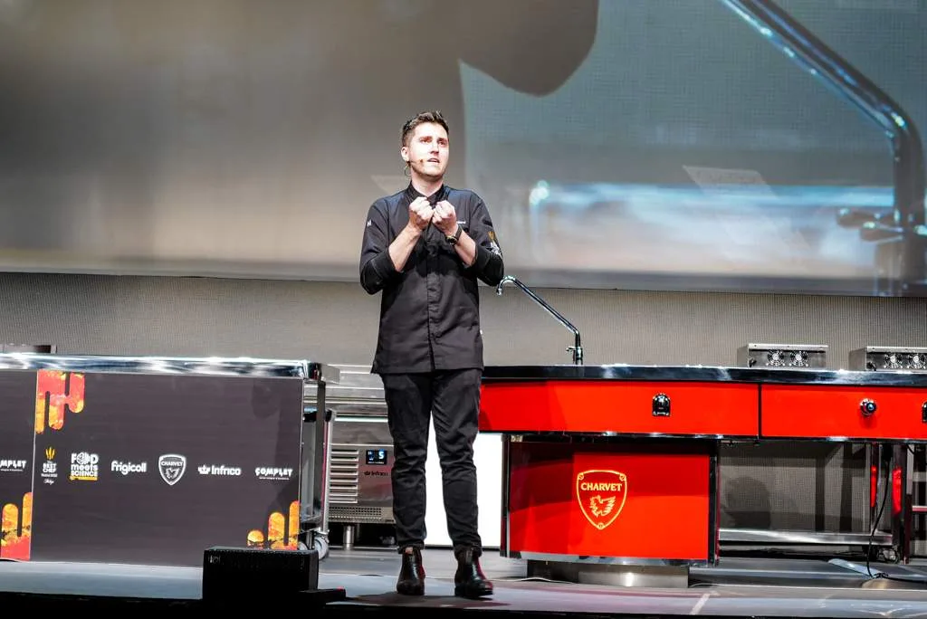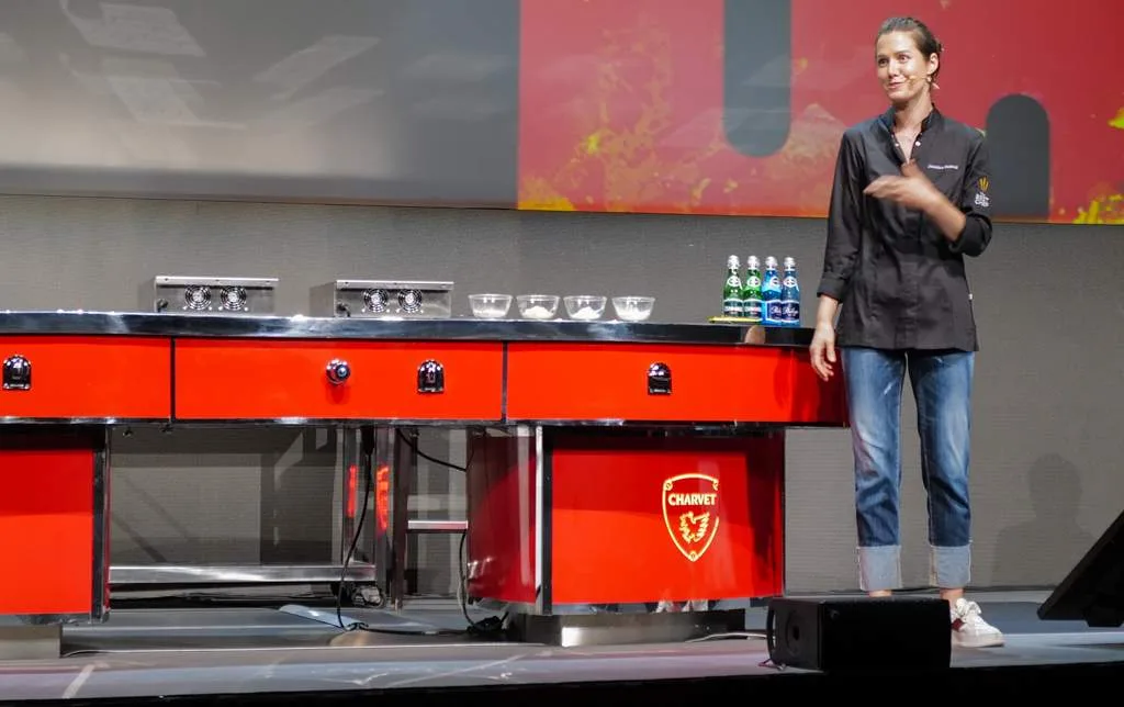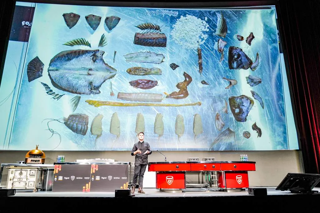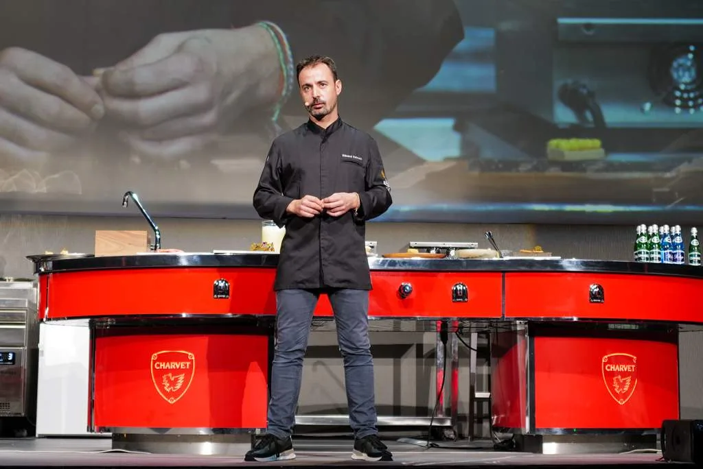 Eduard Xatruch fra Disfrutar i Barcelona sparket i gang dagen med foredraget og demonstrasjonen “Creativity and most Representative Techniques”. I kortversjon viste Edvard hvordan de på Disfrutar (to stjerner) lager butterdeig helt uten smør og i en florlett konsistens. Han viste hvordan man kan lage sfærer med konsentrert fyll for å skape et overraskende resultat. De tre gutta bak Disfrutar jobbet alle på El Bulli under Ferran Adrià og det er ikke å underdrive at de har tatt med seg en del inspirasjon derfra i sin egen restaurant.