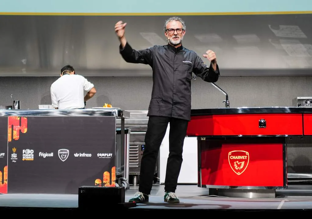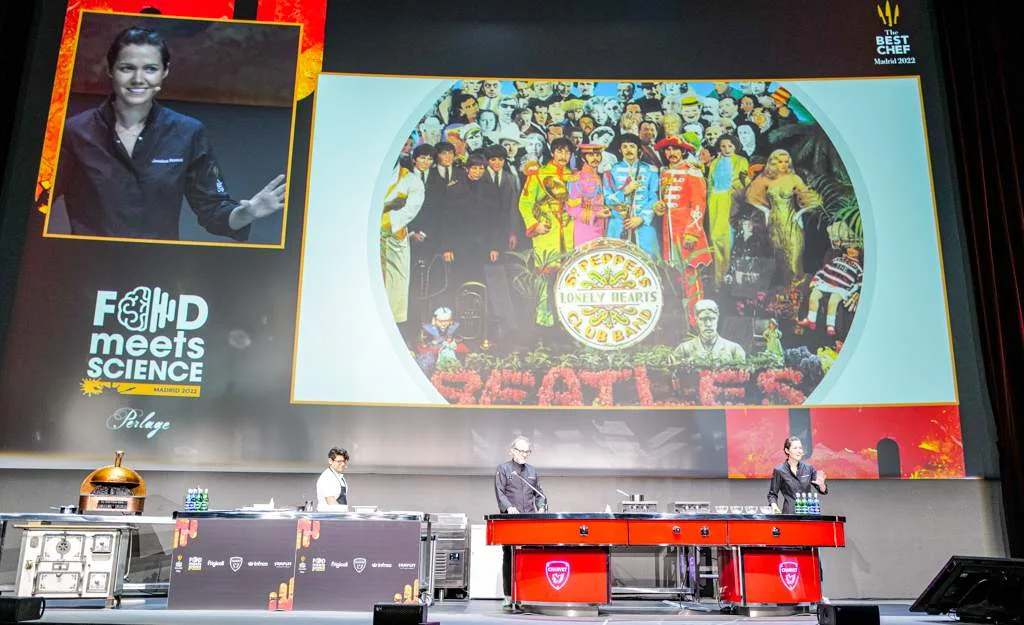 Massimo Bottura fraOsteria Francescanaog Jessica Rosval fra Casa Maria Luigia holdt foredraget og demonstrasjon under tema ‘The Power of Food’ der de fortale om hva de gjorde da Italia stengte ned i mars 2020. Massimo sendte bilde av Beatles’ legendariske album Pepper’s Lonely Hearts Club Band med oppfordringen: “with a little help from my friends” og teksten: Lag en rett.