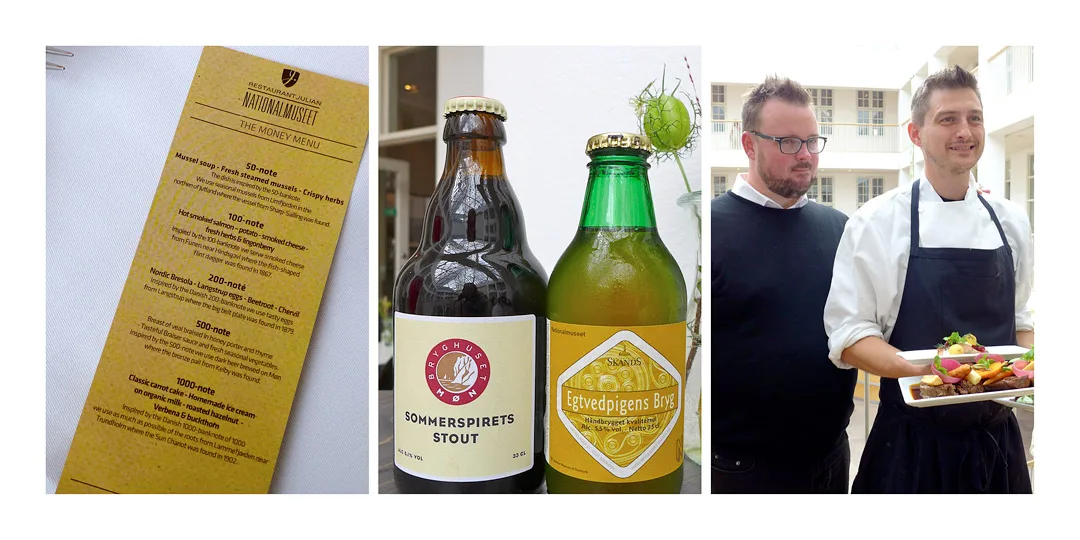 Jeg har vært i København og deltatt på Copenhagen Cooking forrige helg. Som tidligere nevnt er dette en matfestival som varer over to uker, samt i februar. Byen er full av kule happenings som er matrelatert. Som f.eks på Nationalmuseet. Oh yes, du leste riktig. Det er ikke kjedelig å gå på museum! Greia er at Danmark for noen år siden fikk nye pengesedler. På hver seddel (det er fem av dem) er det bilde av et arkeologisk funn samt et monument (f.eks en bro) i nærheten av det stedet det arkeologiske funnet ble gjort. Eier av Restaurant Julian (som ligger inne i Nationalmuseet) Jesper Møller og kjøkkensjef Daniel Christensen fikk en forespørsel fra miljøvernministeren om å lage en «Money Meny» til året Copenhagen Cooking. Den skulle være inspirert av pengesedlene og tegningen på dem. De satte i gang med å lage en meny basert på råvarer fra de områdene de arkeologiske funnene ble gjort. Dette kombinert med sesongens herligheter skapte de en 5-retters meny som nå er mulig å spise.