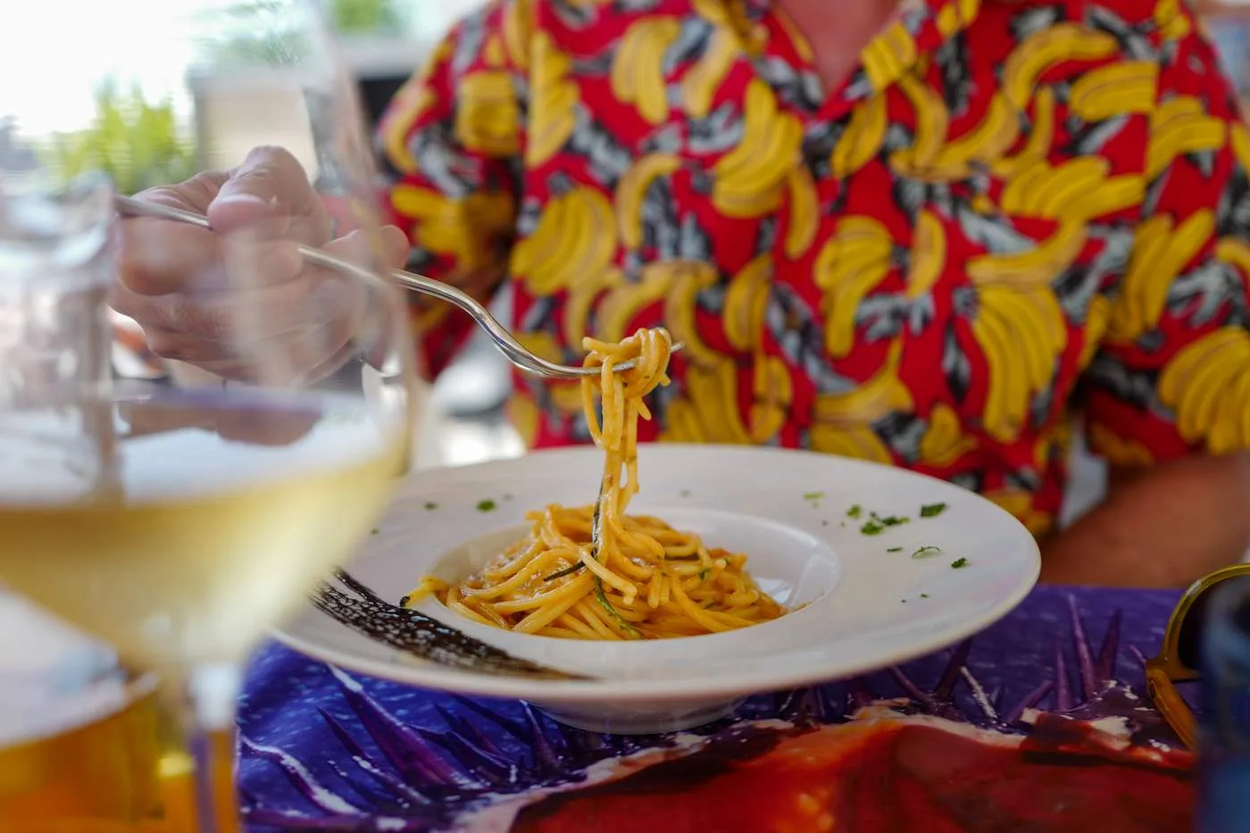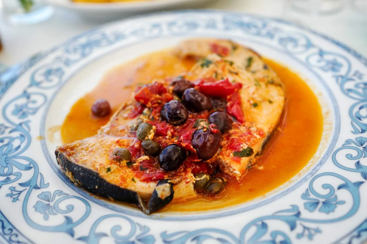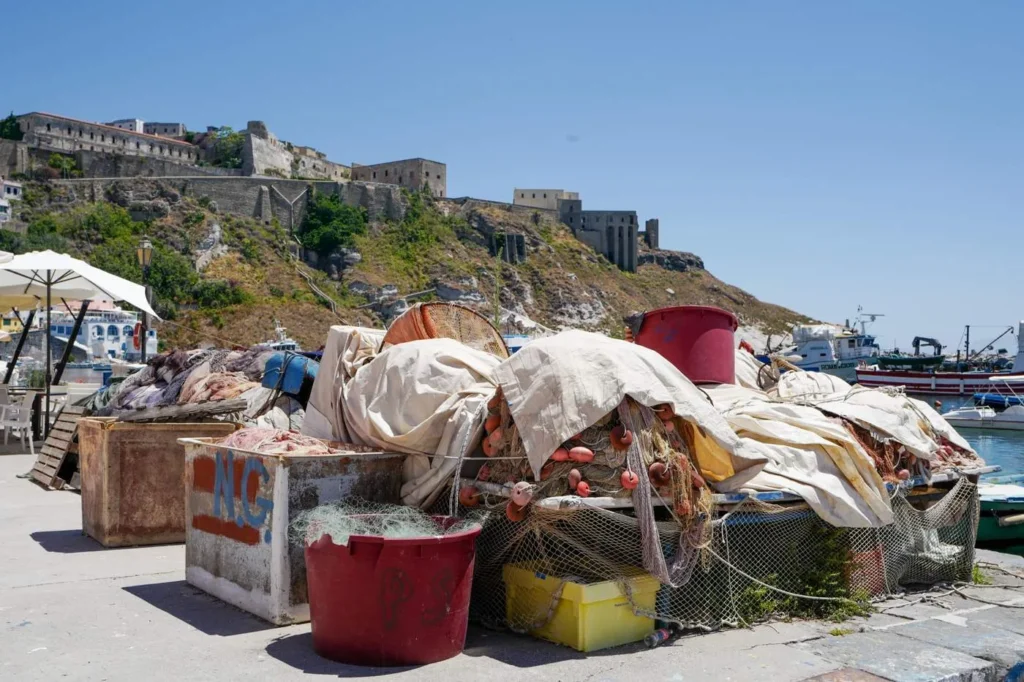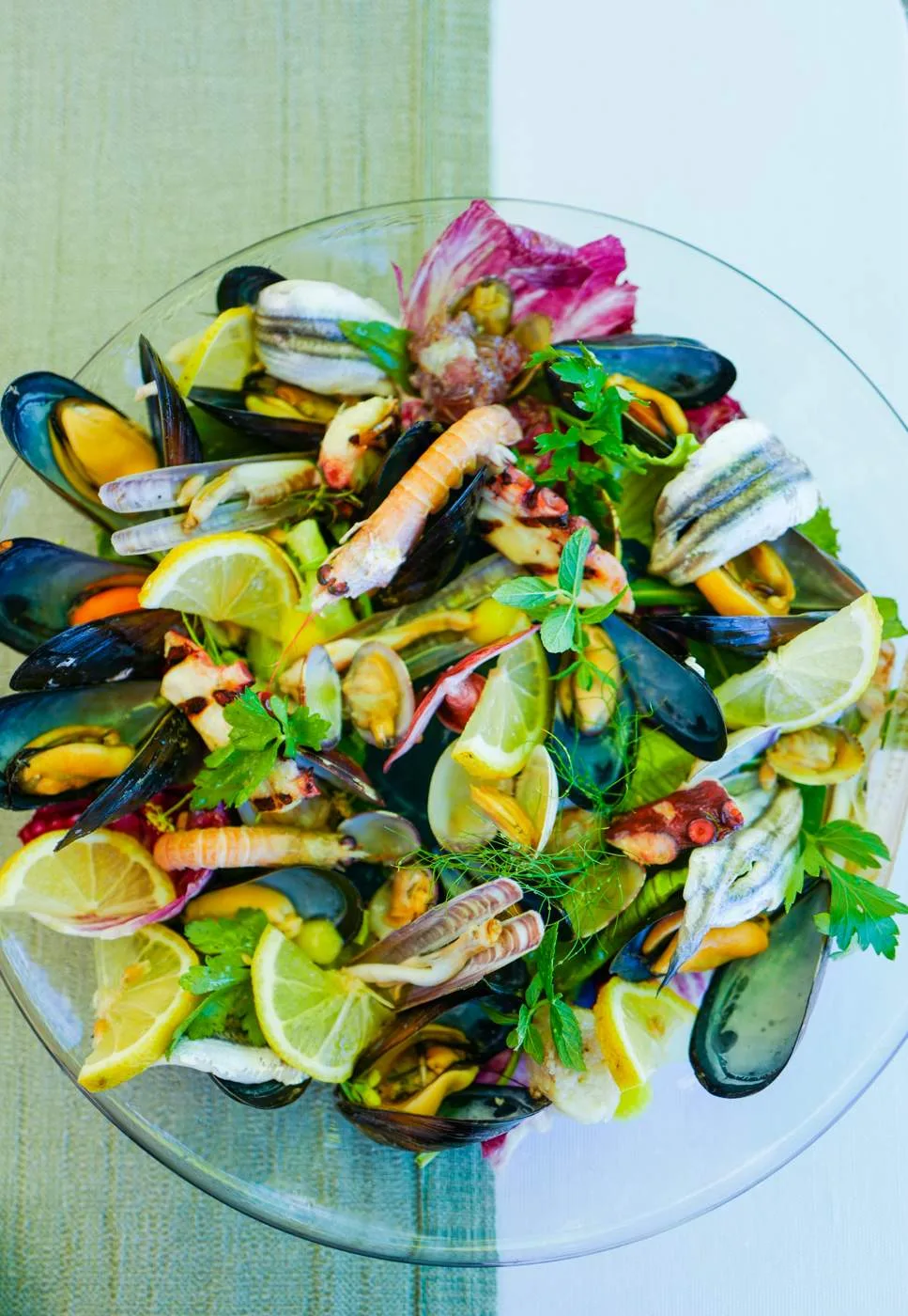 Sørg for å få et bord på Pescheria Azzurra. Dette er en fiskebutikk som ved lunsjtider setter ut noen bord der de servere sprellfersk sjømat rett fra egen butikk og mors kjøkken. Prøv den lokale spesialiteten Miste fritto di mare, frityrstekt sjømat av ypperste klasse. Prøv også skjellene som er dampet og servert med den nydeligste olivenoljen. Pastarettene er også en opplevelse. Jeg anbefaler virkelig spagetti med krabbe og tomat selv om det er litt jobb. Neste gang dropper jeg hvit skjorte også. Krabbe vs Helle 0 – 1. Krabbe vs hvit skjorte 1 – 0