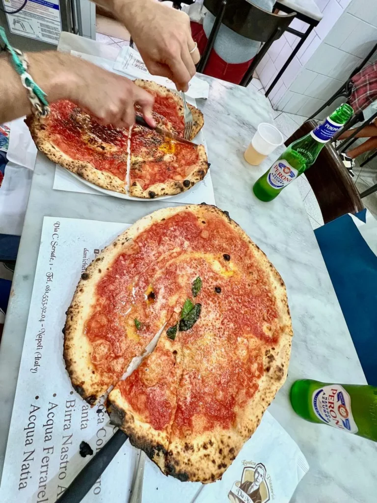 Antica Pizzeria Port’Alba (1738) sies å være det aller første stedet som solgte pizza og det skjedde fra matvogner. Pizzaen ble brettet sammen til en trekant og så spiste man den slik. Jeg har aldri satt meg ned for å spise her for jeg synes pizzaene ser for moderne og turistifiserte ut. Jeg tar muligens feil, men foreløpig har det ikke fristet.