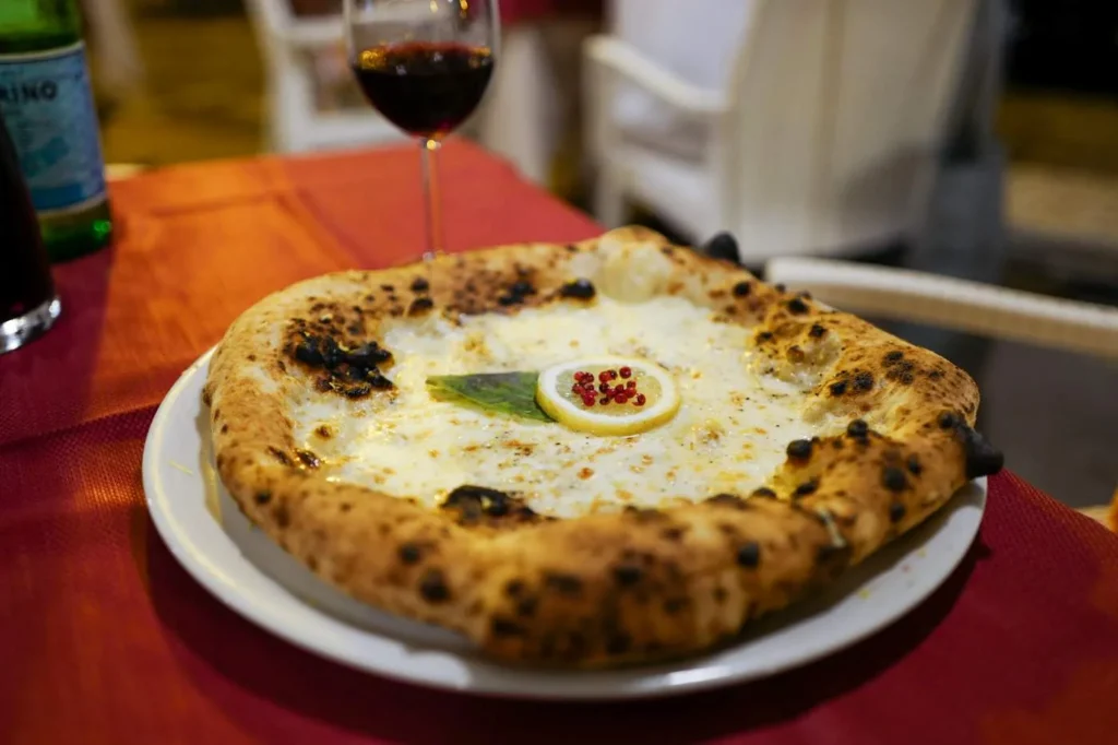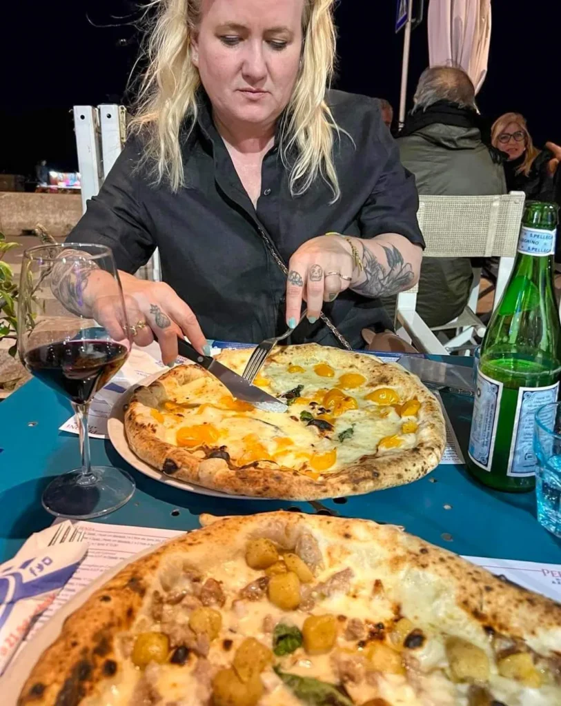 I havna i Porto d’Ischia ligger Restaurant La Baia Del Clipper. Den idylliske restauranten ligger ytterst på tuppen av havna og her får du nydelig mat som kråkebollepasta, pasta fylt med sitron og en nydelig pistasjtiramisu. De har også nydelig pizza. Vi fikk servert pizza-brød med olivenolje og salt og med hakkede ferske tomater før maten som en snack og ut fra deigen kan jeg slå fast at pizzaen er god. Her var vi faktisk to ganger på turen.