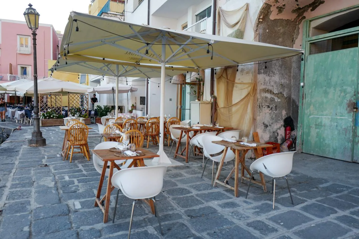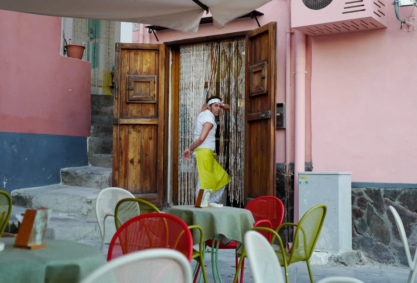 Corricella er kjent fra en av mine favorittfilmer, Il Postino. Baren fra filmen ligger på stripen ved havna og er selvsagt ikke en bar i virkeligheten. Det er vanvittig trivelig å sitte på en av sjømatrestaurantene her.