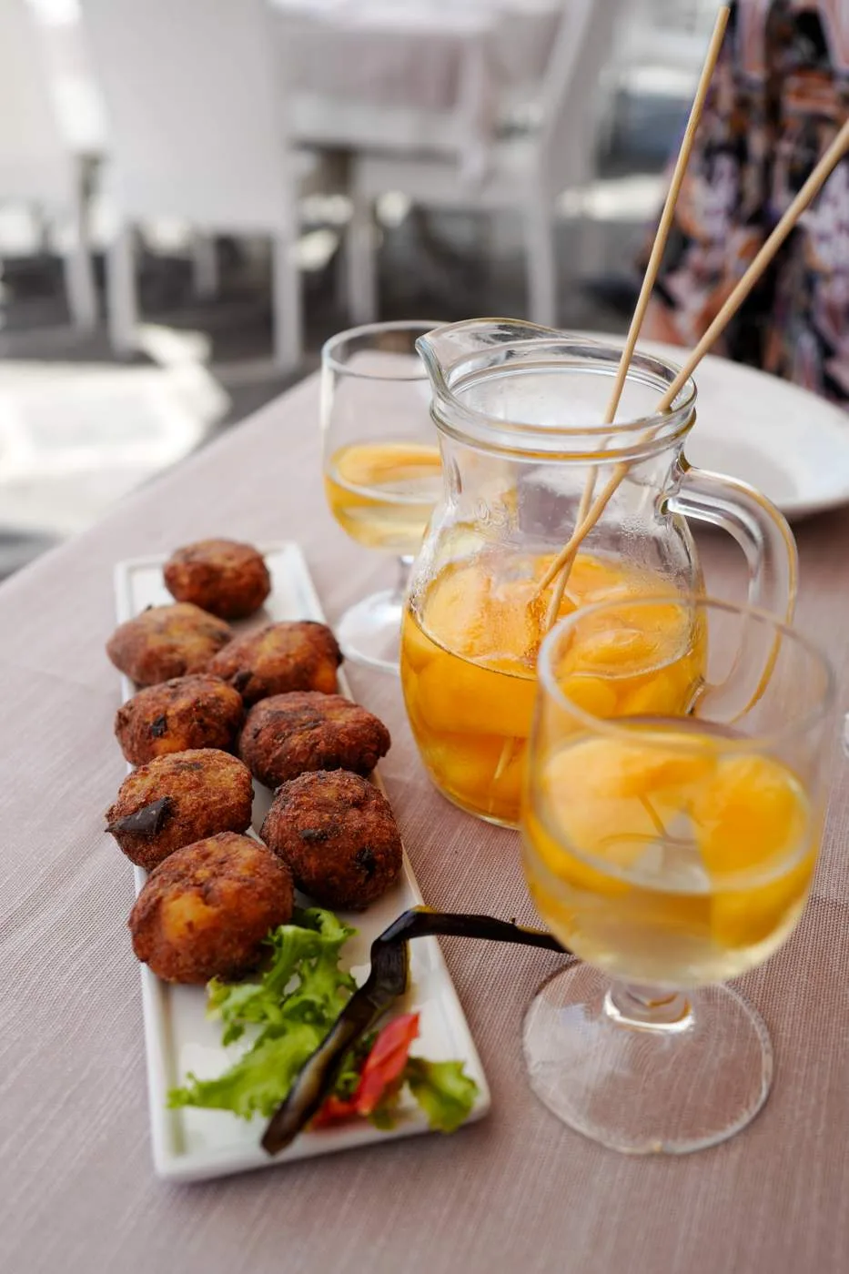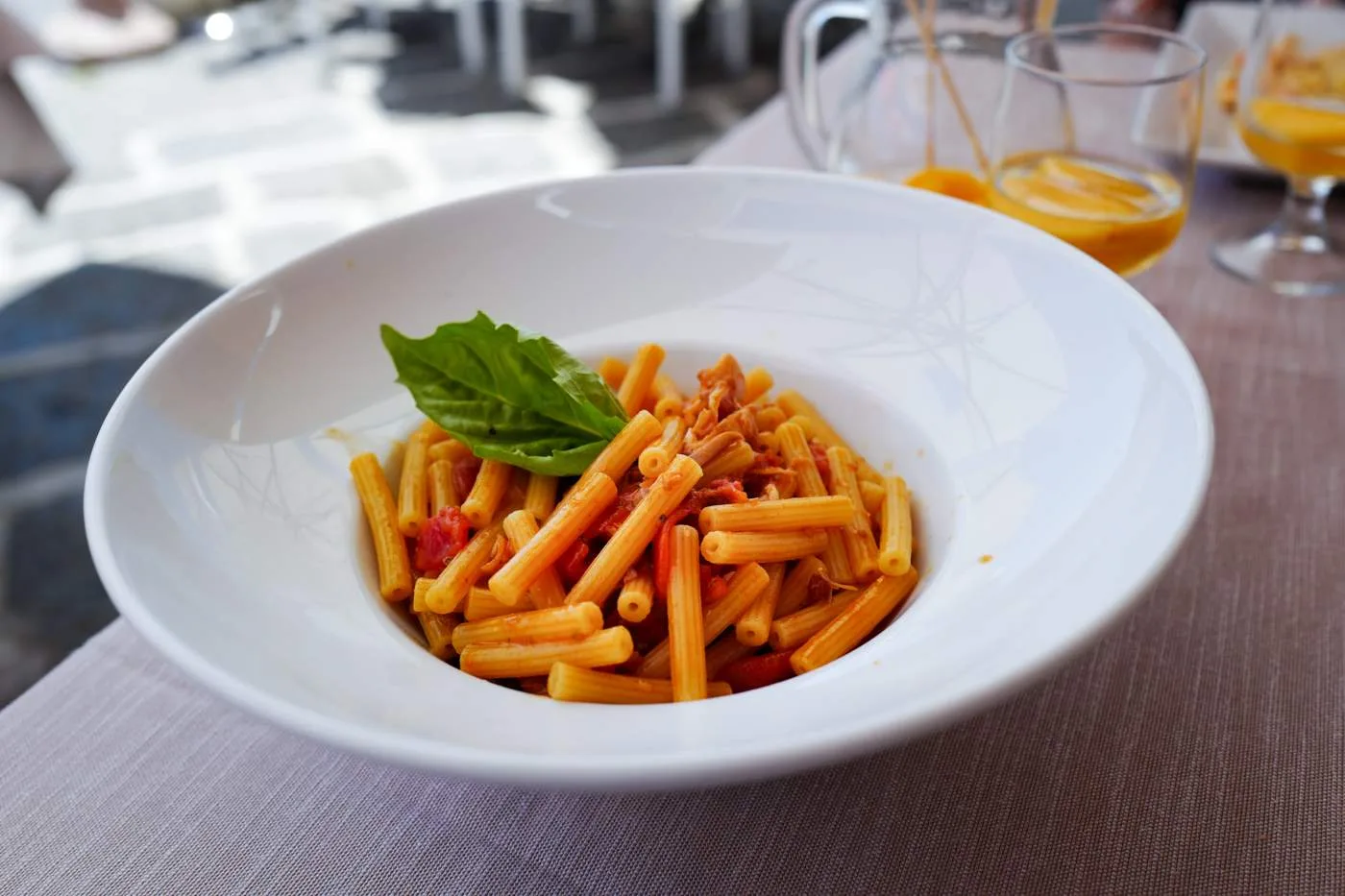 Vi spiste på Crescenzo i Marina Chiaiolella og der var det veldig bra mat. Elsket kaninpastaen deres og krokettene med sverdfisk og aubergin. De lagde også en nydelig Pesche al vino – Gule fersken som har trukket i iskald hvitvin. En drikk som man ser overalt på øyene rundt Napoli. En slags italiensk sangria, hvis man kan kalle det for det.