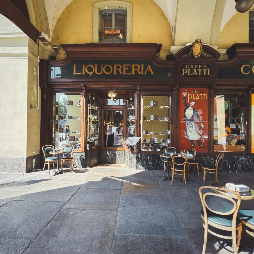 En av mine favoritt-drikker, Vermut ble til i Torino. Hva hadde vel en Negroni vært uten vermut? Gin og Campari måtte ha vermuten for å bli ført opp i den hellige treeninghet. I Torino må du gå på noen av de klassiske barene (som også er kaféer) og slå deg løs i aperitivomenyen. Jeg kan anbefale en Milano-Torino som er 50/50 vermut og campari (campari er fra Milano, så derav navnet). Jeg prøvde den på to forskjellige steder, og min favoritt var på det legendariske stedet Caffè Mulassano (P.za Castello). Det er her tramezzino-sandwichen ble oppfunnet i 1926, men også stedet der kunstnere og interlektuelle gikk for å nyte sin aperitivo.