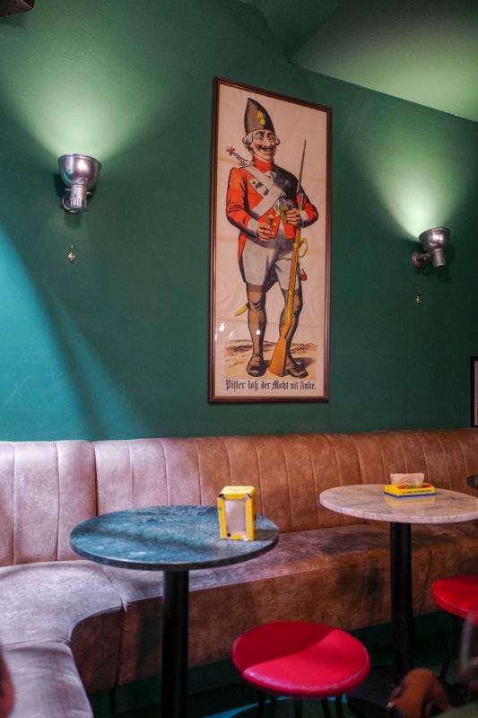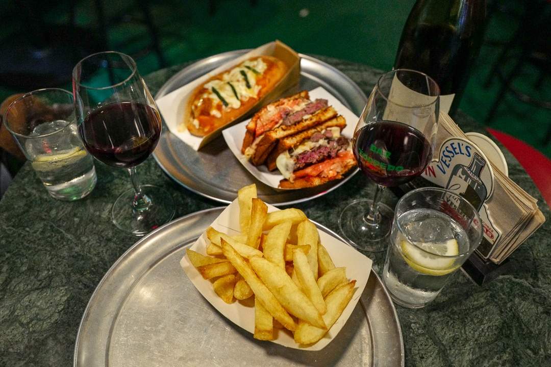 Vi bestilte en brioche med kjøttboller og en Patty Melt med burger mellom to toast. Begge ganske sloppy utført, men deilig smak. De har litt å gå på på maten, men er du fysen på junk er det definitivt et sted å oppsøke. Naturvin på menyen, selvsagt og fussball, retroinnredning og hipt.