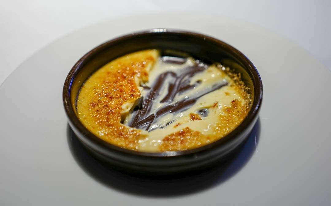 Til dessert gikk jeg for en silkemyk crema catalana med ingefær. En uvanlig, men genial versjon. Erik bestilte en sjokolade-sak som var helt fantastisk. Vi bestilte kaffe og en liten chupito de hierbas (litt som grappa) før vi gikk ut i gatene i bydelen El Clot, som vi ikke har besøkt tidligere. Men det skal vi gjøre noe med, for dette ser ut som en superhyggelig og lokal bydel.